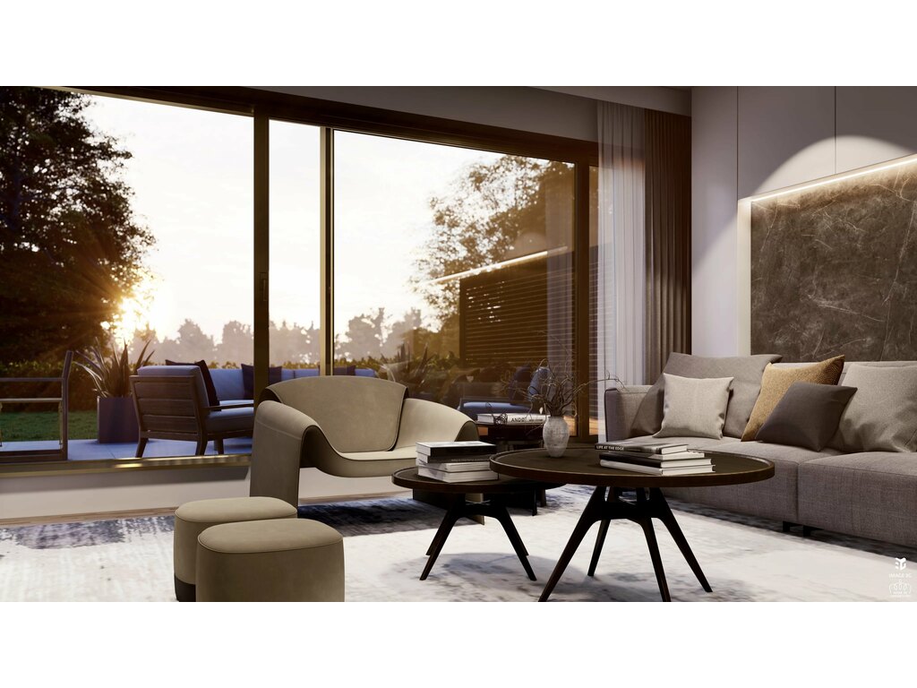 Chaque duplex propose une surface habitable spacieuse allant de 107m² à 133m², composée d’un bel espace de vie et de 3 chambres. Les espaces sont baignés de lumière par une grande baie vitrée exposée plein sud, menant directement à une terrasse et offrant une atmosphère confortable avec vue sur la nature.