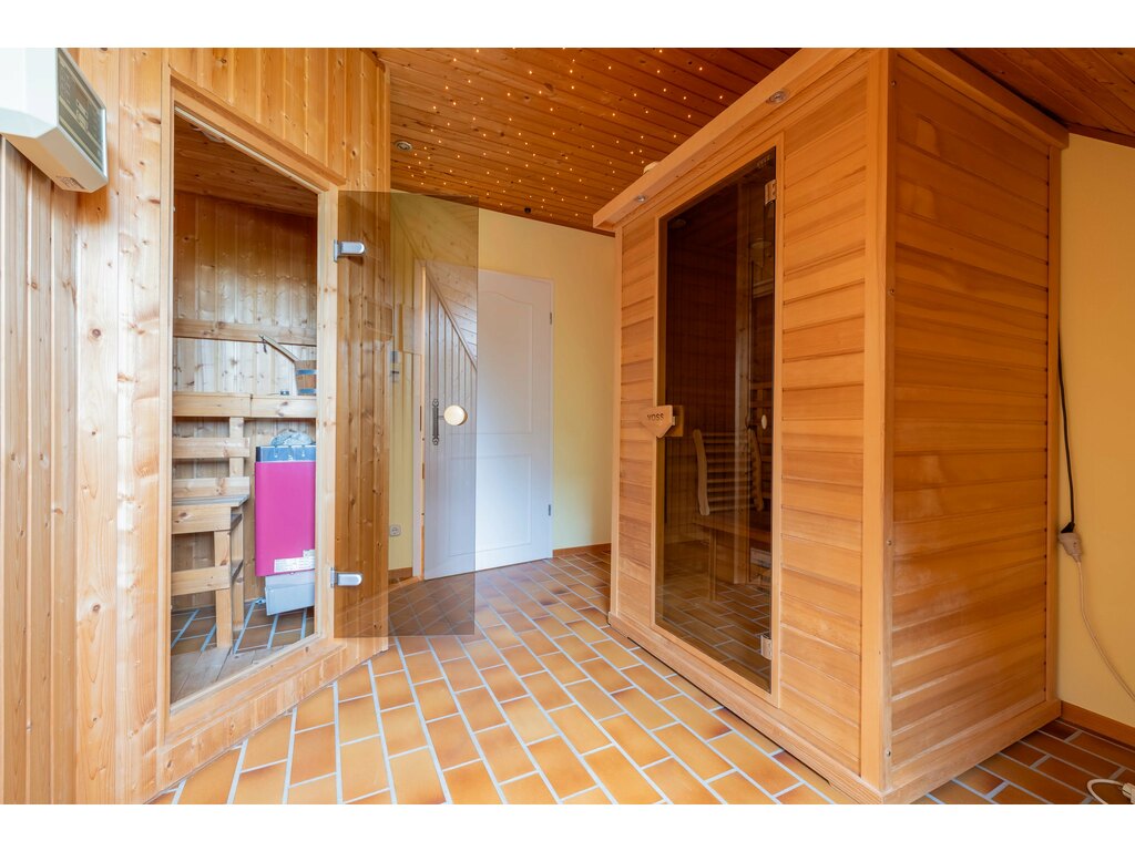 - Terrasse d’environ 40 m², ouverte sur un jardin arboré de 10 ares avec vue dégagée sur la forêt