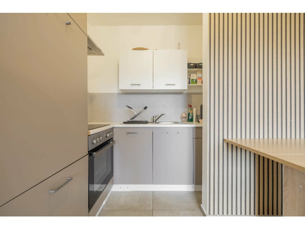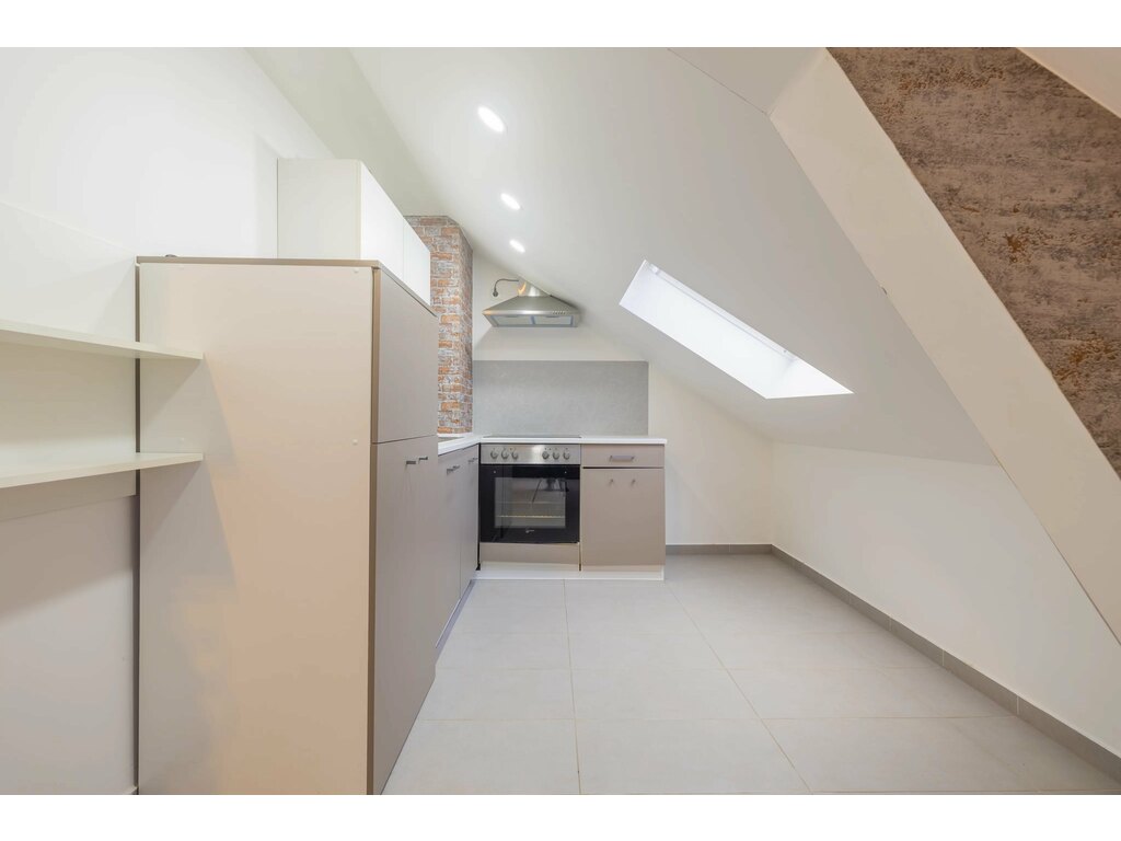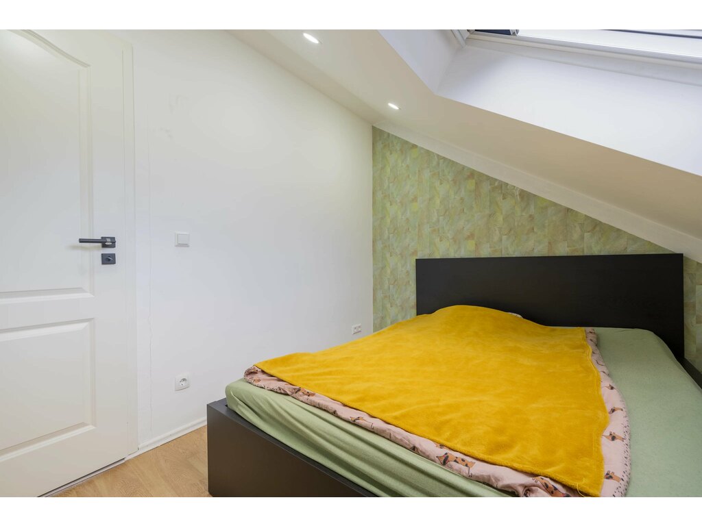 Les combles ont été transformés en studio, équipé avec une chambre en une petite cuisine ouverte.