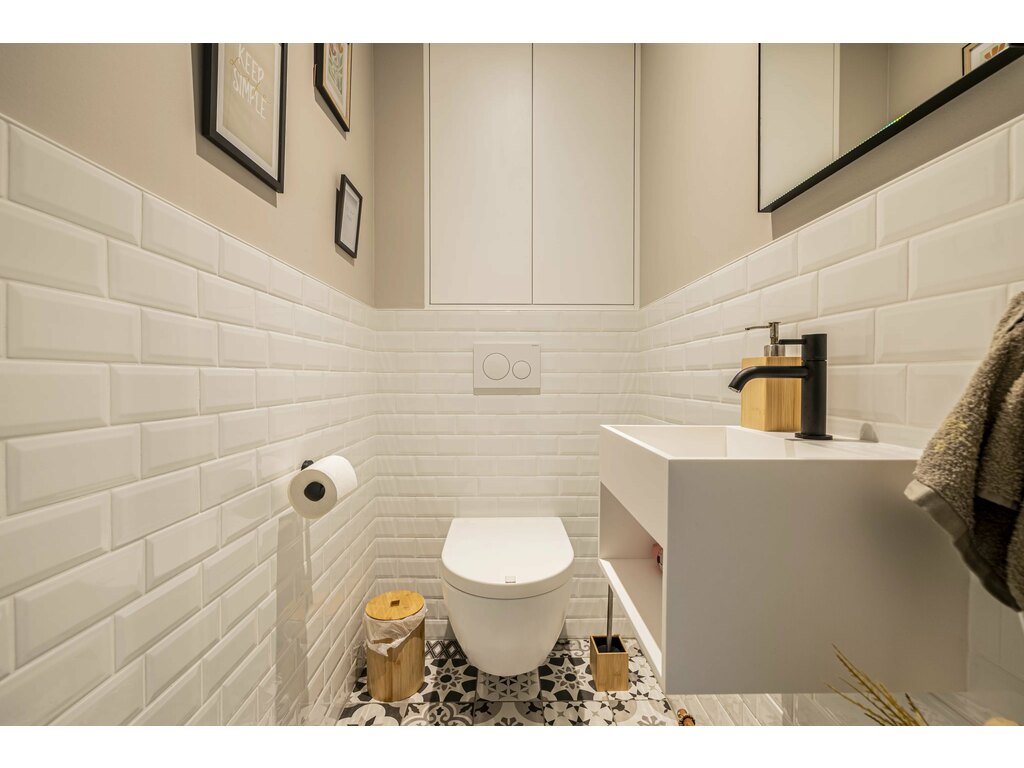 - Salle de bain avec douche à l'italienne, double lavabo et un toilette