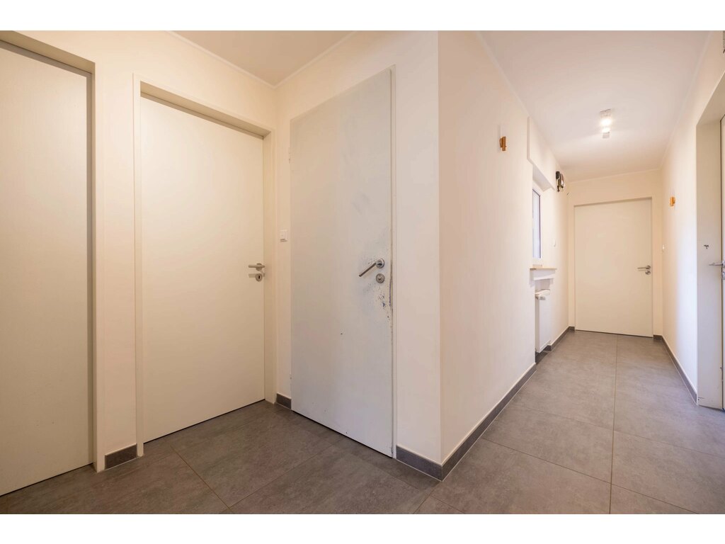 un hall d’entrée, un WC séparé, un spacieux living ouvert sur la salle à manger, une cuisine séparée, ainsi que deux chambres à coucher.