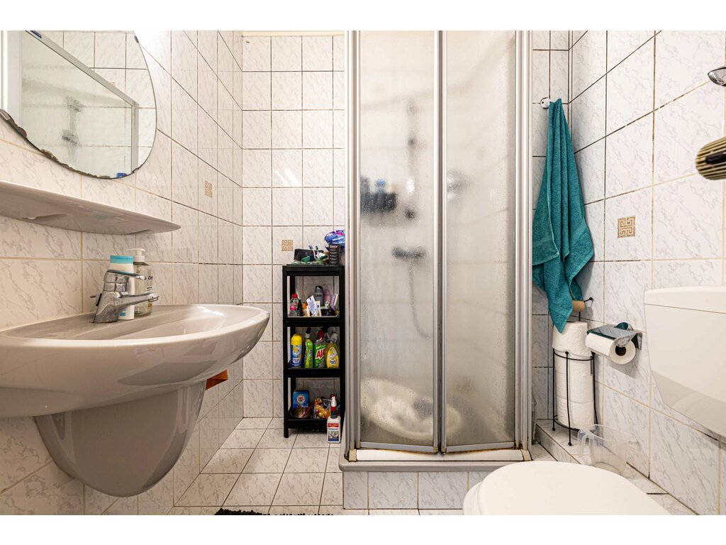 - Salle de douche avec lavabo et toilette