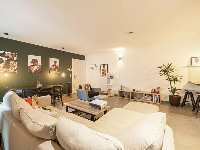 Agréable espace de vie baigné de lumière, avec accès à un balcon couvert