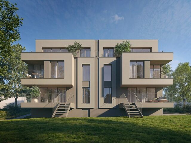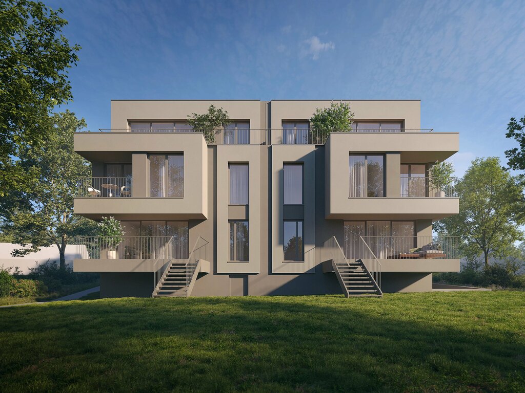 Ce projet à l’architecture contemporaine et épurée se compose de deux maisons bi-familiales jumelées, proposant au total 4 appartements de type duplex, pensés pour offrir un confort de vie optimal et des volumes généreux.