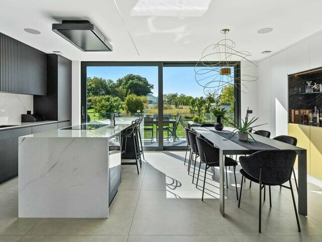 - Cuisine entièrement équipée avec cave à vin double zone, ouverte sur une salle à manger conviviale avec bar