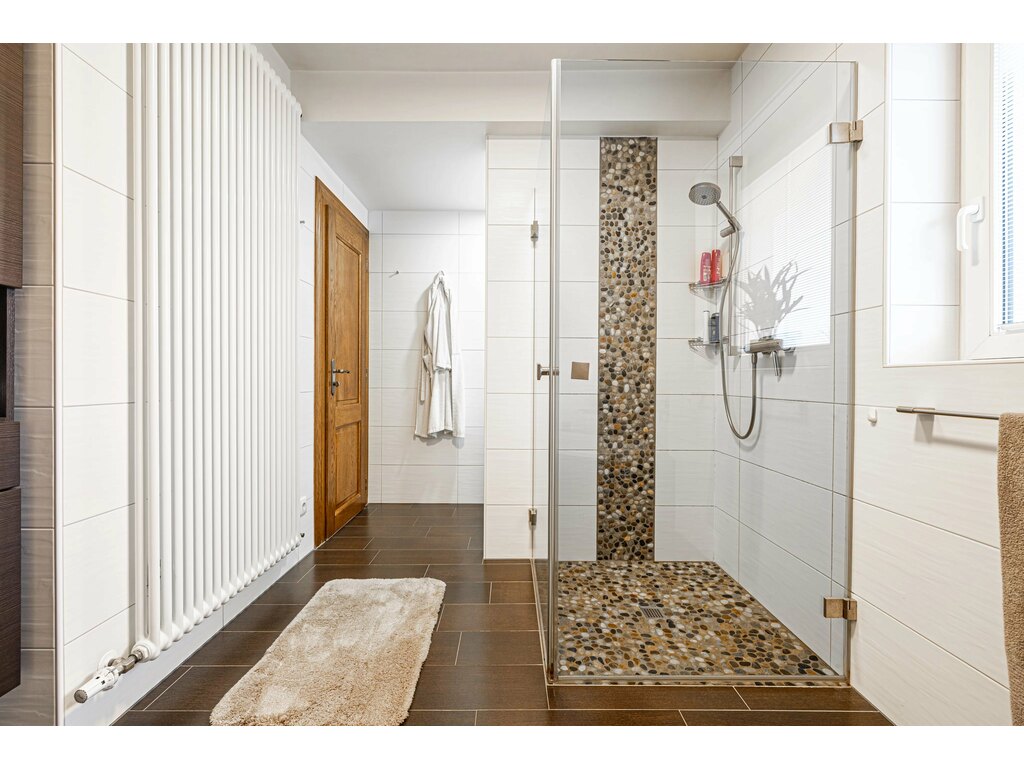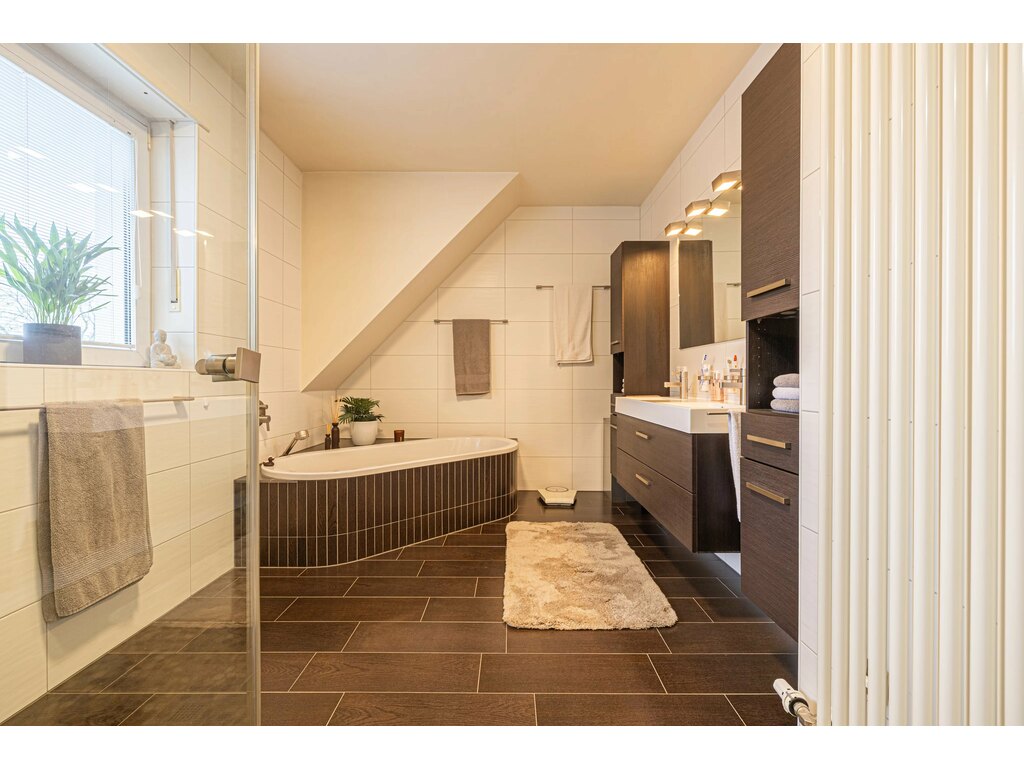 À l’étage, vous trouverez de belles chambres à coucher, dont une avec dressing, ainsi qu’une grande salle de bain confortable.