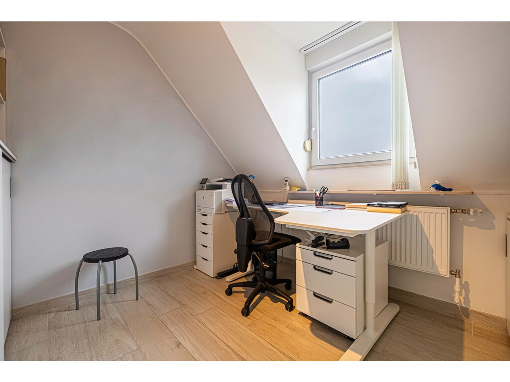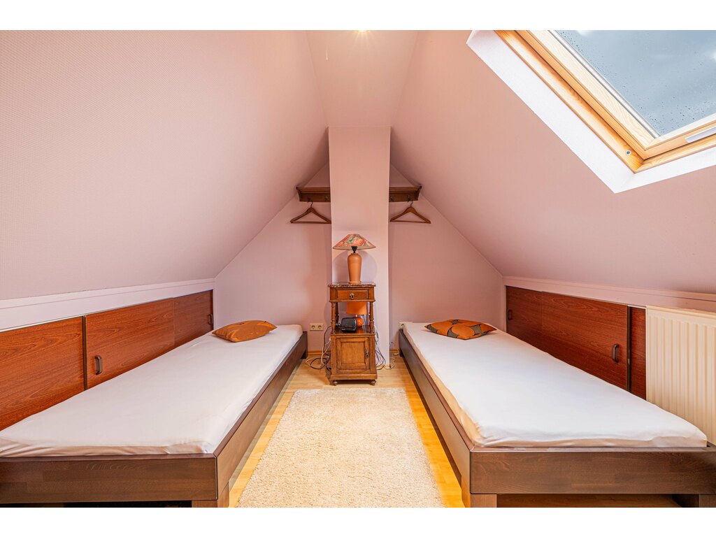 Le grenier aménagé propose deux pièces supplémentaires, pouvant être utilisées comme chambres, bureau ou espace loisirs selon vos besoins.