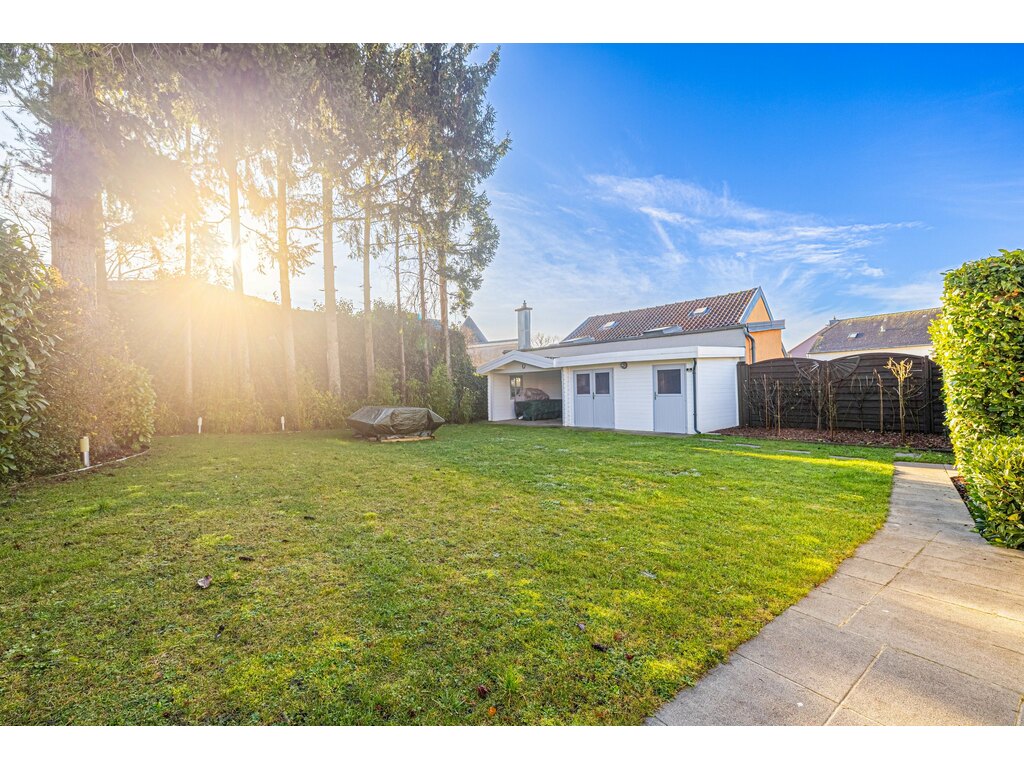 Implantée sur un terrain de 7,06 ares, la propriété séduit immédiatement par son jardin soigneusement aménagé, agrémenté d’arbres matures garantissant une excellente privacité. Une maisonnette à l’arrière du terrain vient compléter l’ensemble, idéale comme espace de rangement, atelier ou projet annexe.
