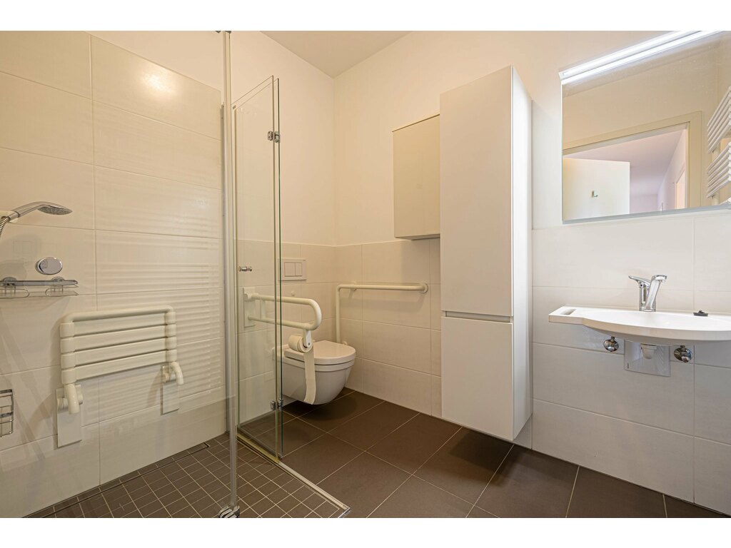 - Salle de douche adaptée avec finitions modernes