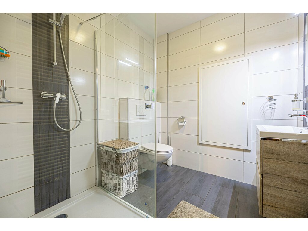 Salle de douche avec lavabo et WC