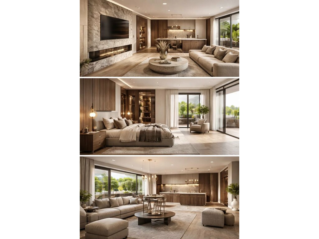 • Façades nobles avec une assise minérale en brique chaleureuse au rez-de-chaussée, surmontée de Crémolite épurée aux étages.