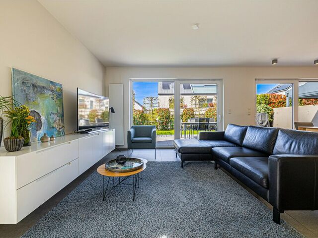 - Salon et salle à manger avec accès à la terrasse et au jardin
